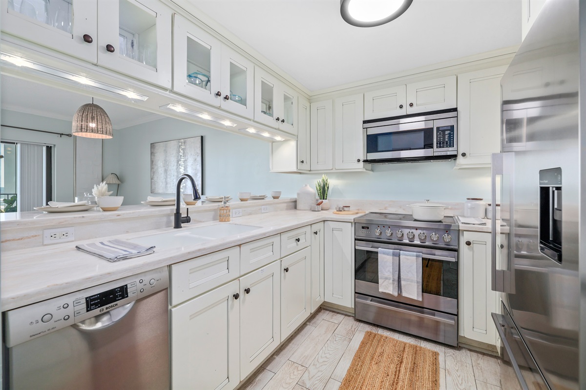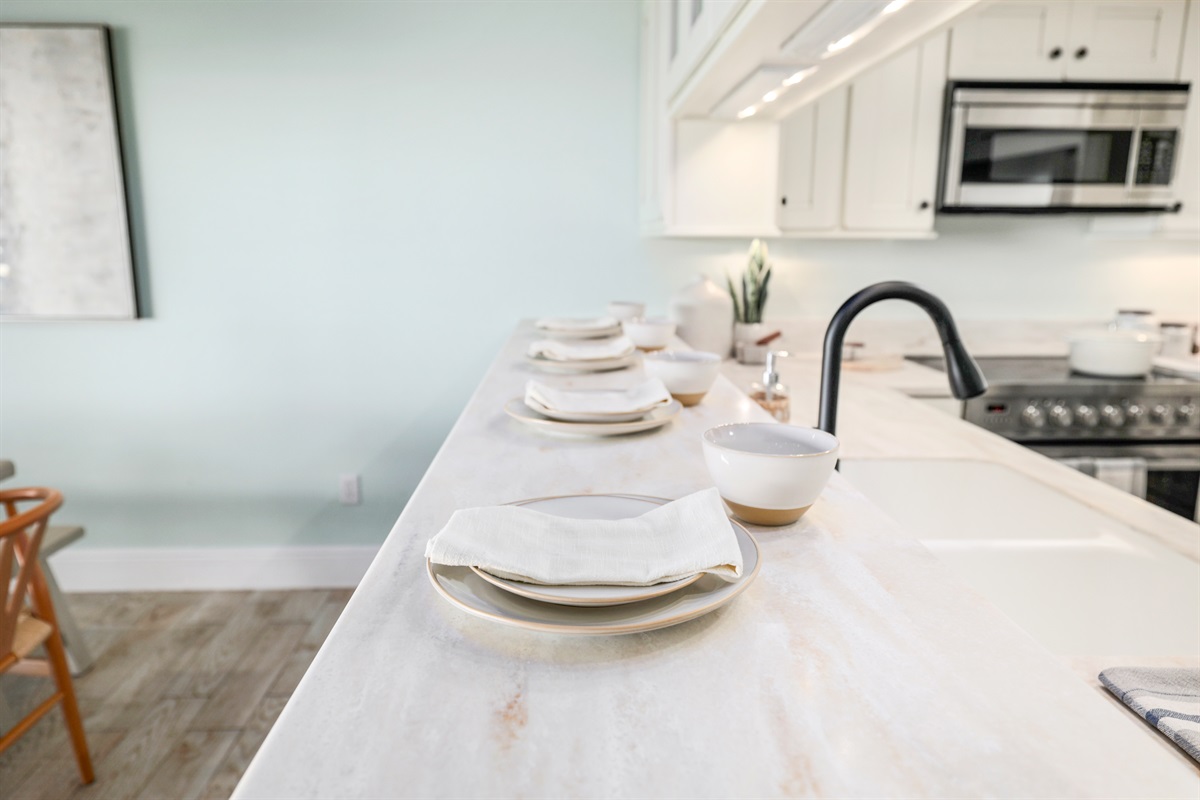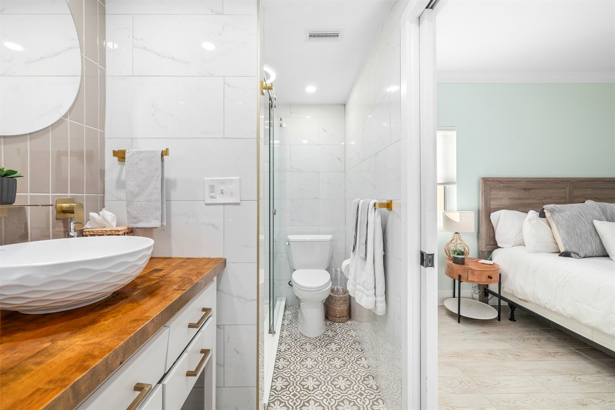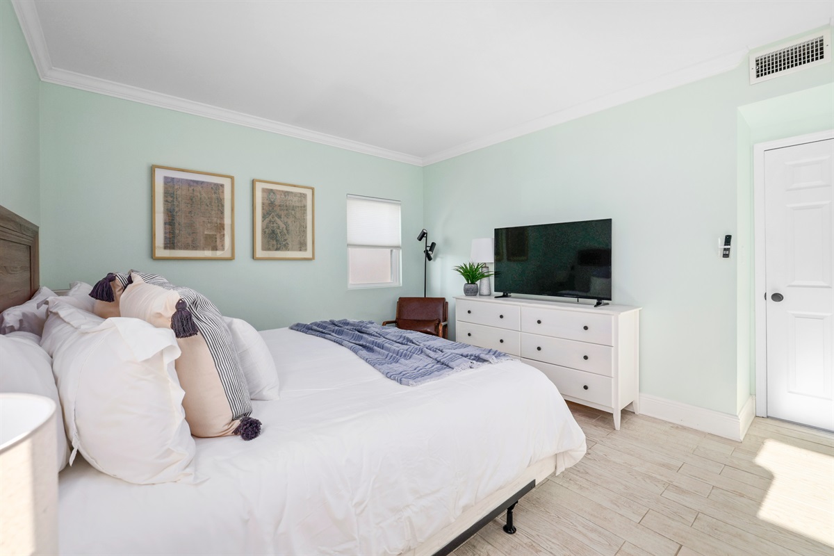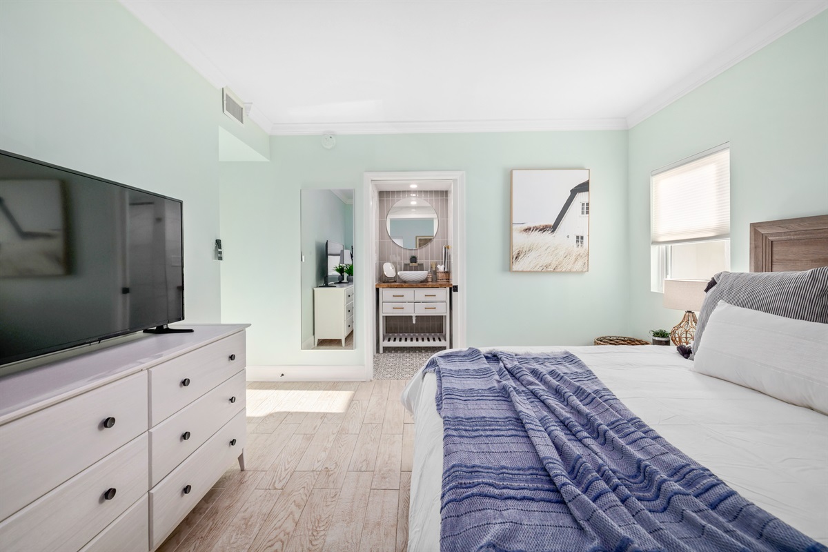 Ocean Villa 2 offers two serene king bedrooms and two updated bathrooms – a spa like ensuite with a walk-in rain shower plus a guest bath with a tub/shower combo. Thoughtful touches include an in-unit washer/dryer, stylish coastal decor, and plenty of natural light throughout. You’re just steps to the sand, so bring your swimsuits and settle into easy, barefoot living.